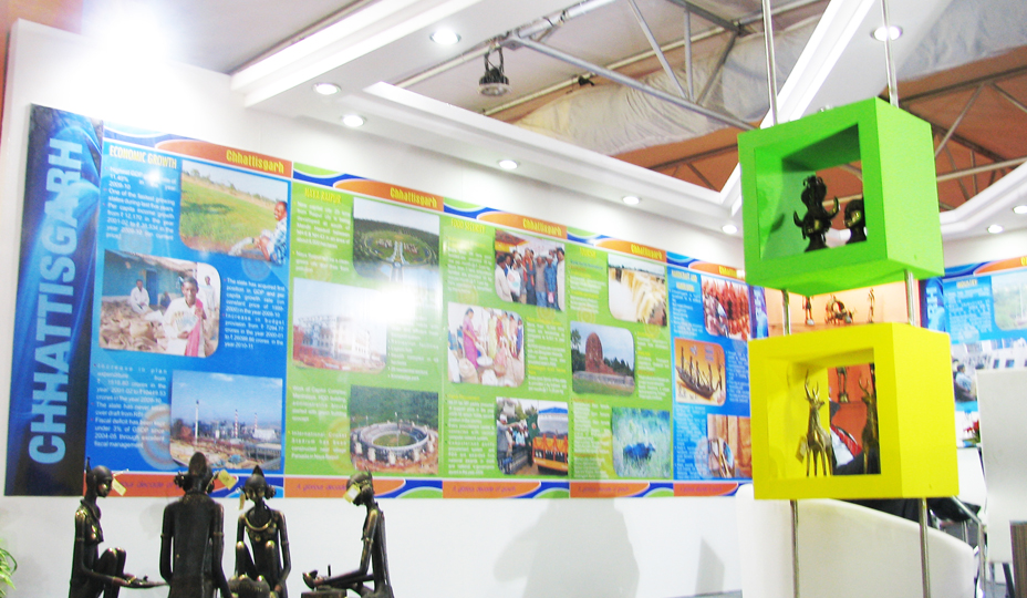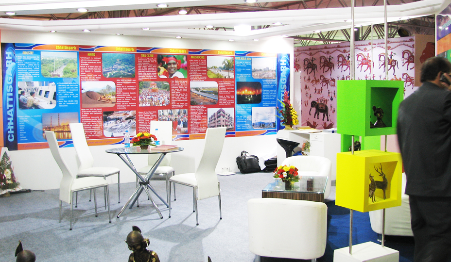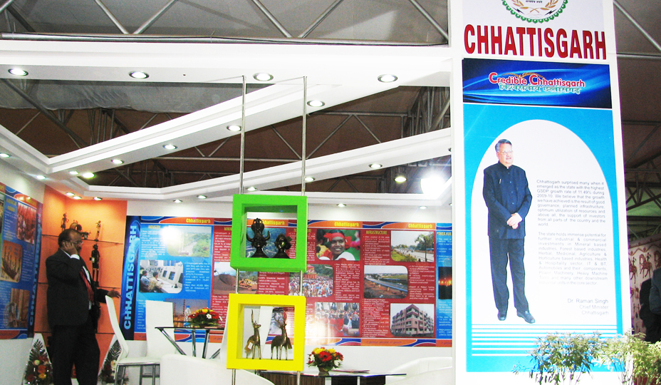 We offered : Vibrant Gujarat 2011 – Chhattisgarh State Exhibition Booth Design and Development for Chhattisgarh State, Vibrant Gujarat 2011, Ahmedabad, 6 Meter X 6 Meter, 2 Side Open.