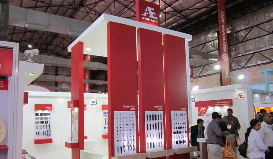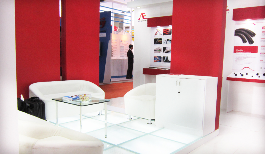 Eye catching stall design with professional excellence is our prime mission. We got another opportunity to design the stall of Arihant. Here, we have used the concept of logo to design the entire stall. We symbolized Red colour as “Stop and watch”. A large product display area was created to showcase the products.